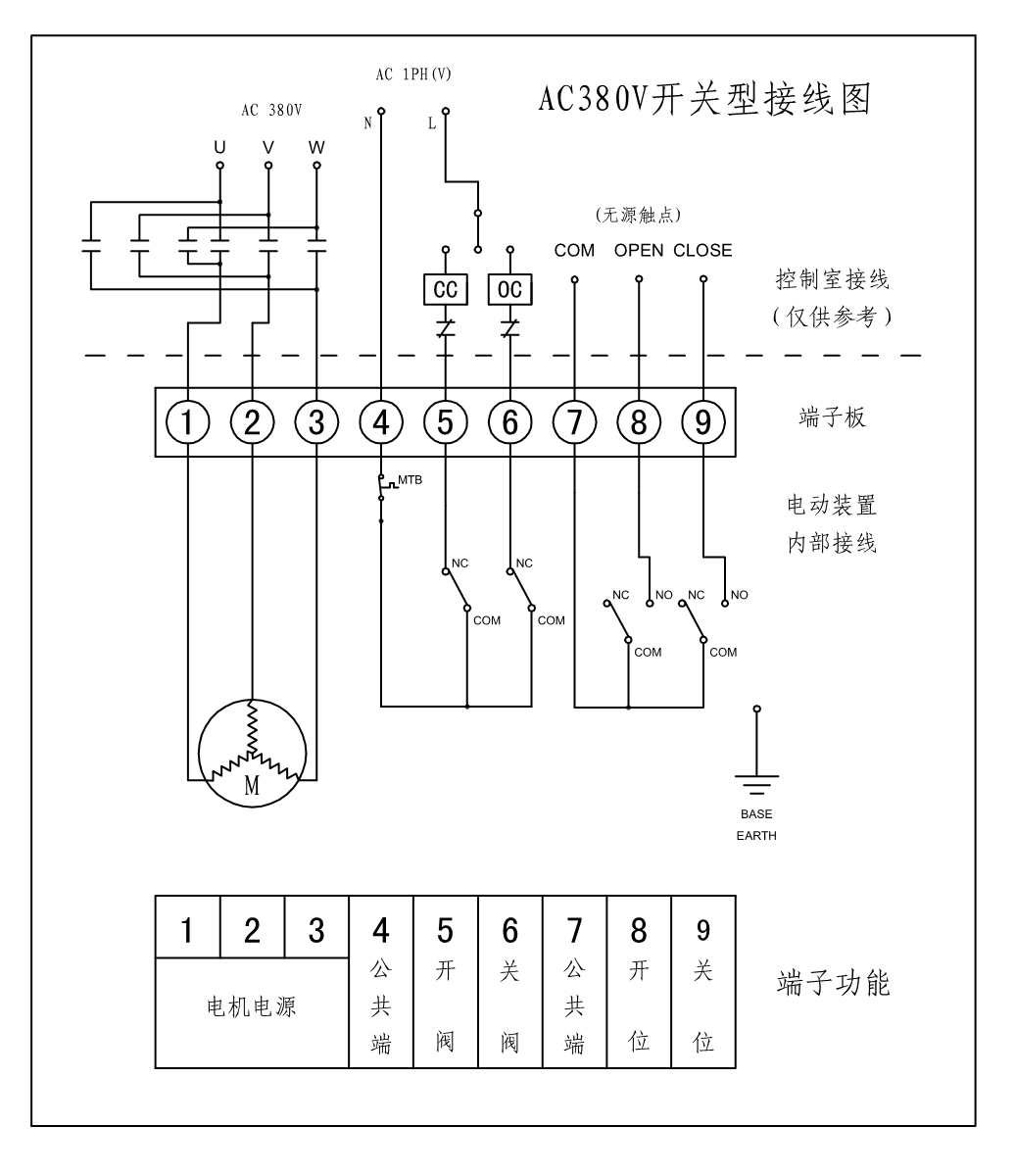 AC380V標準開關型電動球閥接線圖